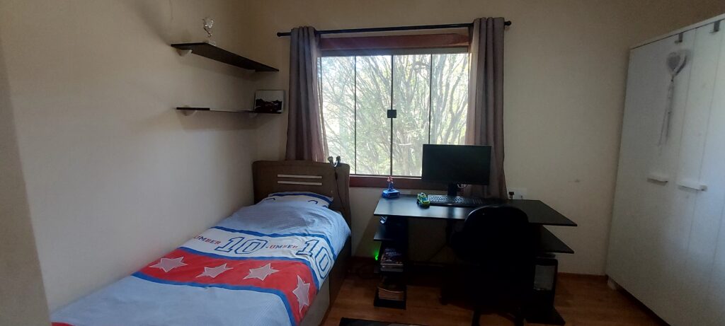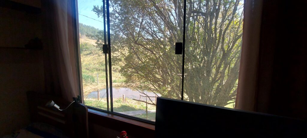 Bedroom 2The dimension of this room are 3.75×3.15 = 11.5m2 WindowThe window offers a view of the jaboticaba trees and the lakes and hills behind the house.