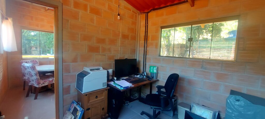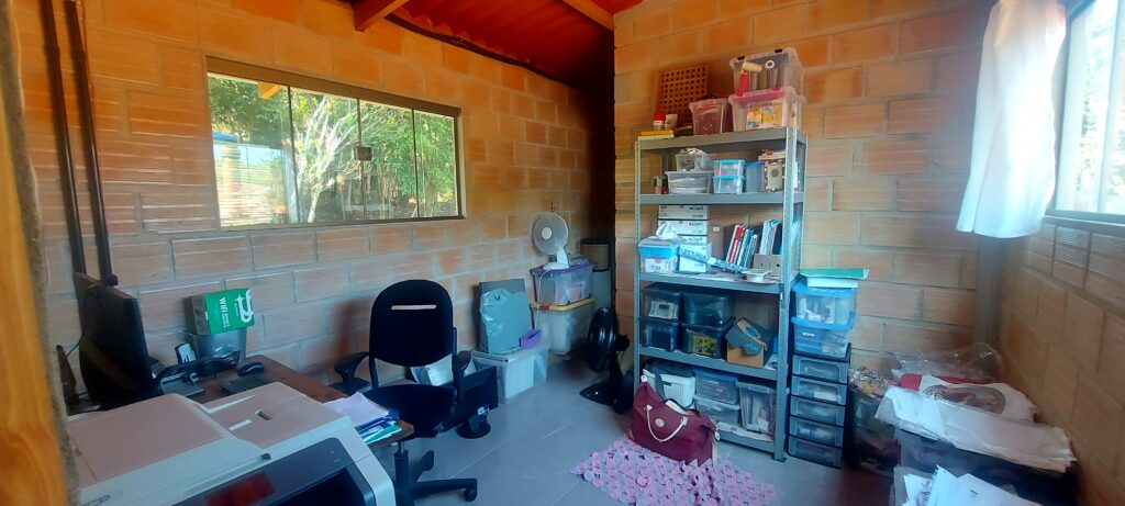 The office/study is an area that could be used as a studio apartment, as it has a bedroom, a small living room, and an unfinished bathroom.